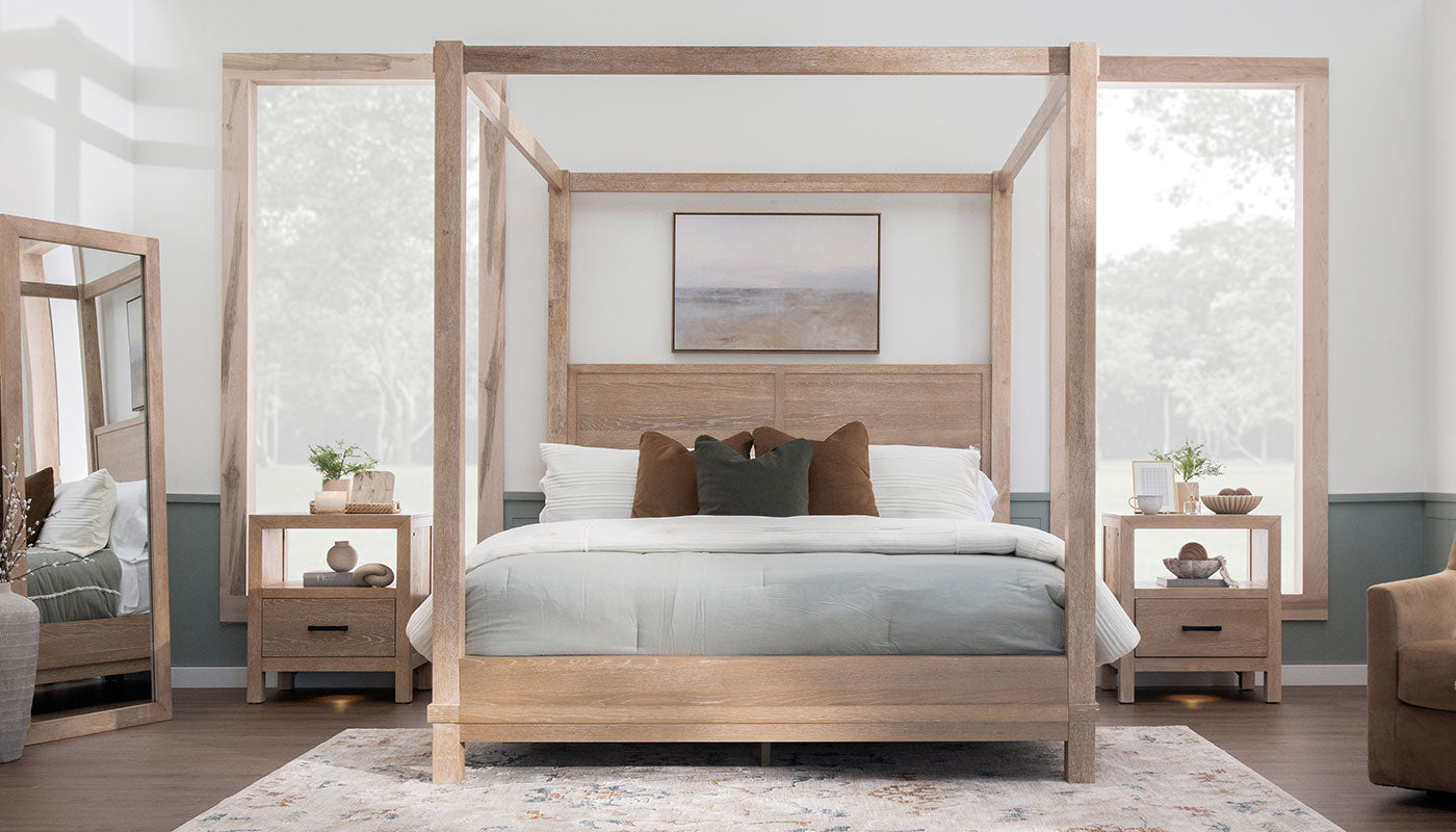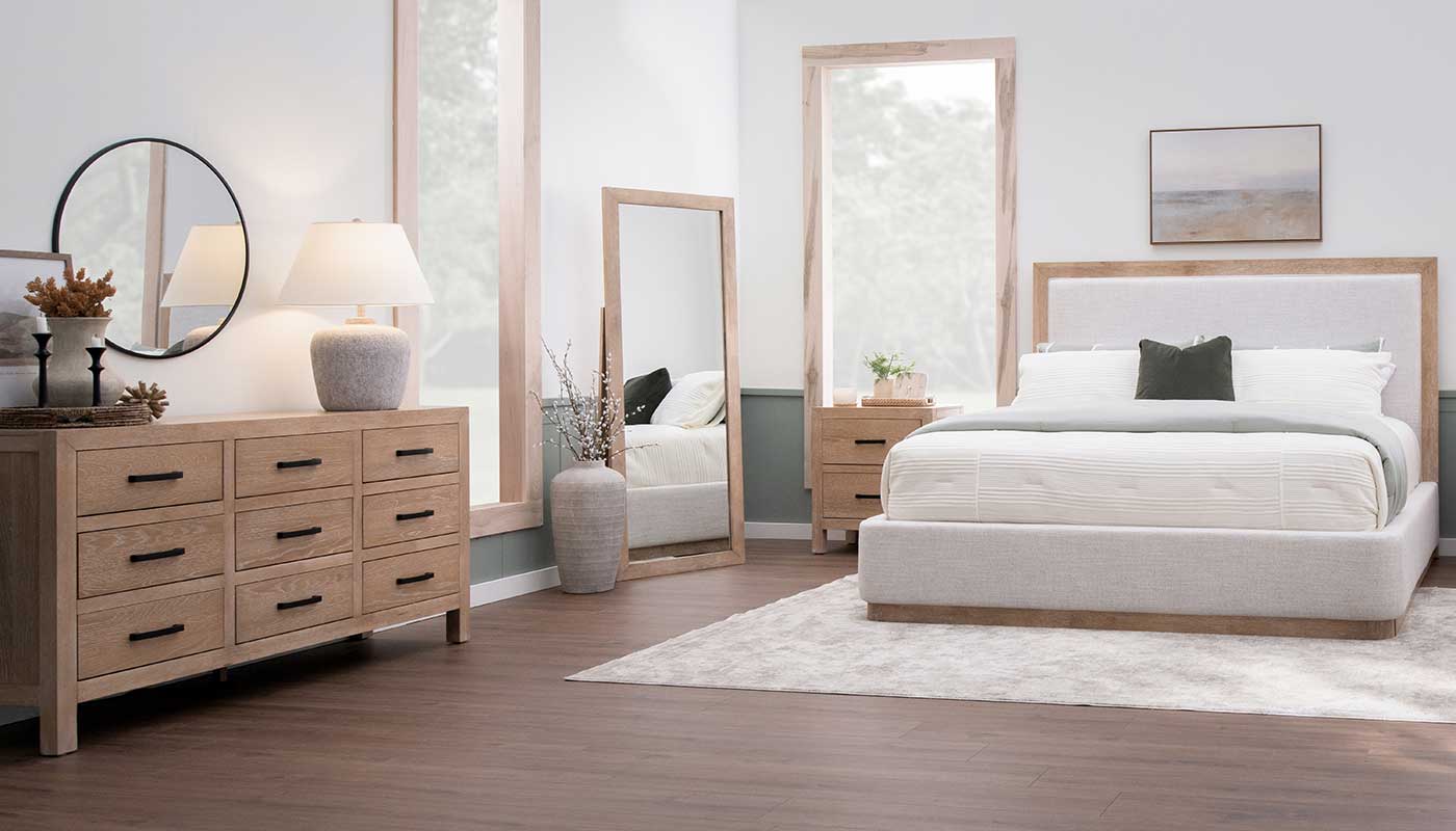 Our Taylor bedroom collection is a harmonious blend of minimalism and timeless elegance. Crafted with precision using Rubberwood solids and adorned with an Oak veneer, each piece in this collection exudes quality and sophistication. Choose from multiple configurations, including an upholstered panel bed or a four-poster bed, along with a 9-drawer dresser, 5-drawer chest, floor mirror, 1-drawer or 2-drawer nightstand with USB and LED light, bench, and console, allowing you to tailor your space to perfection. The Taylor collection showcases meticulous craftsmanship with French and English dovetail construction in the case goods, ensuring durability and stability for years to come. The ball-bearing glide system offers smooth and effortless drawer operation, while the stained drawer interiors add a touch of refinement to each piece. Embrace the essence of modern simplicity with our Taylor bedroom collection, where understated elegance meets enduring quality for a bedroom sanctuary that stands the test of time.